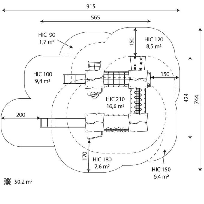 - Klettersteine aus strapazierfähiger HDPE-Platte, witterungsbeständig, Stahlseile in Polypropylengeflecht, verbunden mit langlebigen Kunststoffelementen, Edelstahl oder Aluminium,