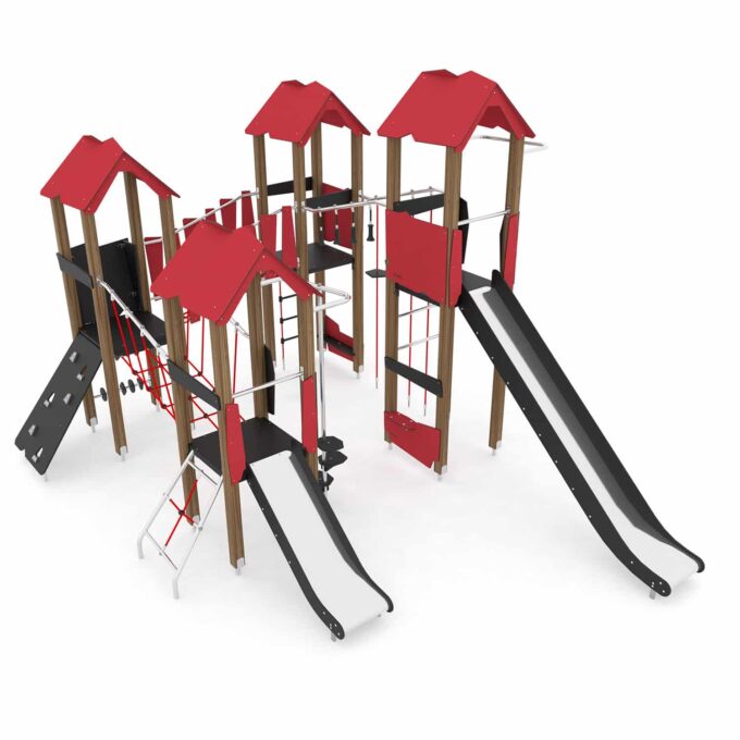 Spielturmanlage mit 4 Türmen und 2 Rutschen WOODEN WD1412 von Vinci Play