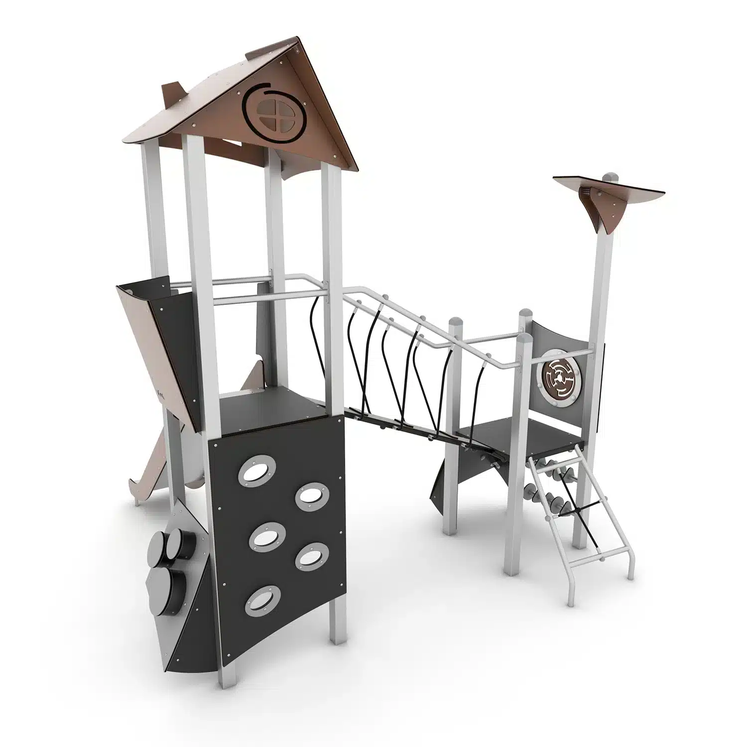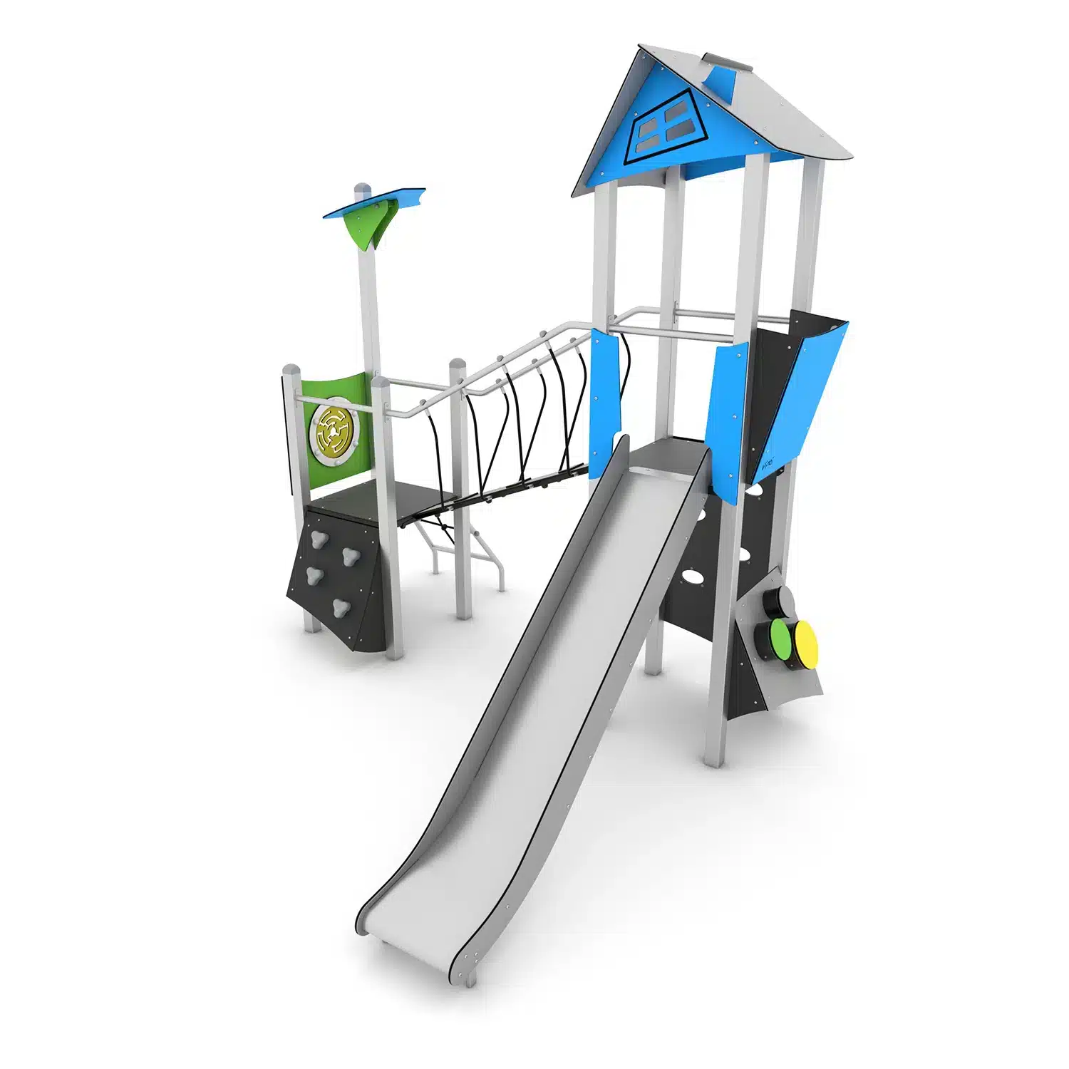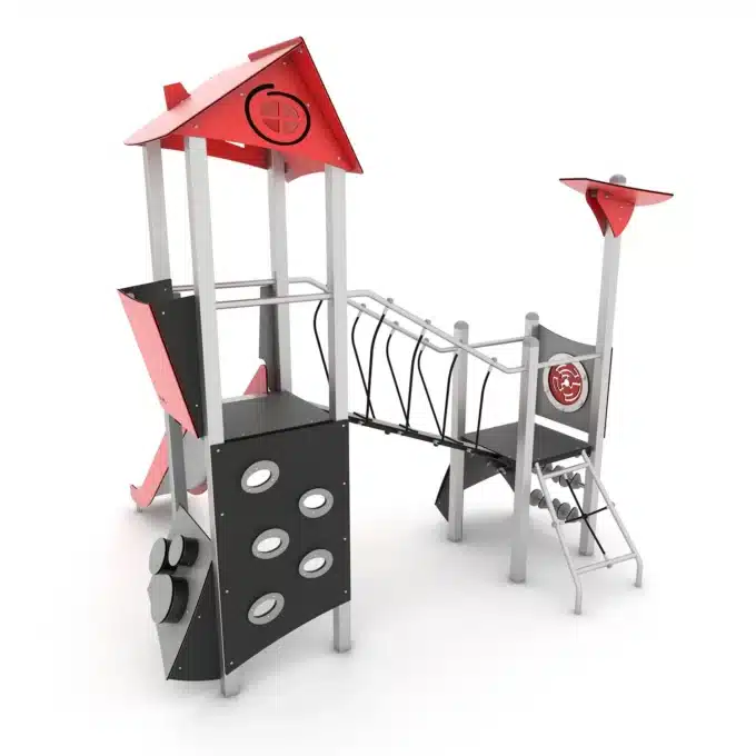 Spielturmanlage mit Rutsche, Brücke und Kletterelementen – STEEL+ 1707 von Vinci Play – Das Abenteuer für kleine Entdecker!