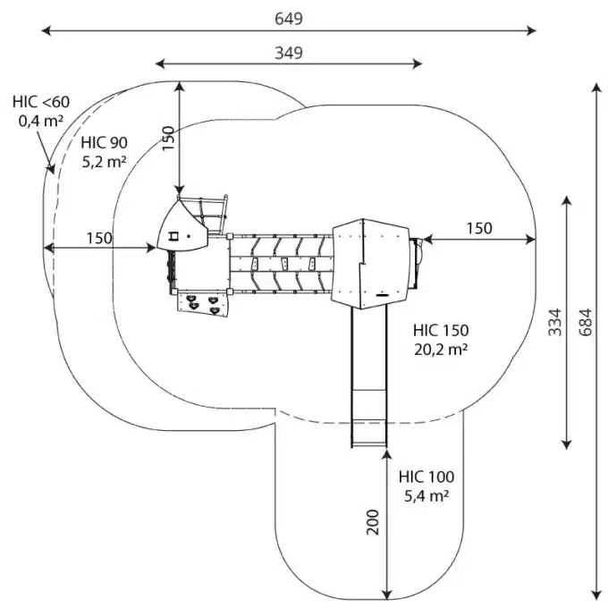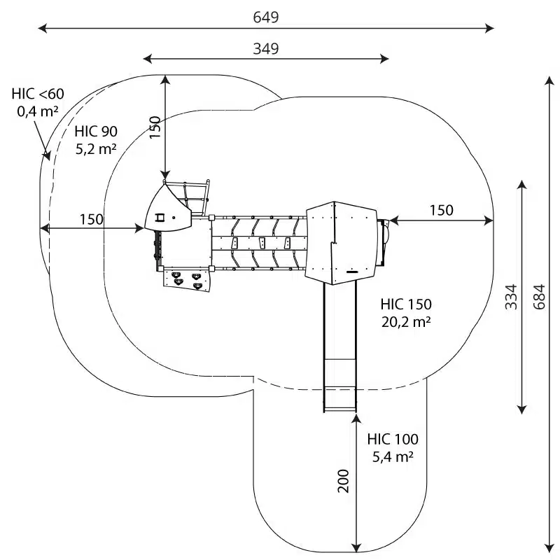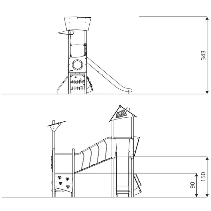 - Höhe der Rutschenplattform: 150 cm