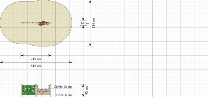 - Platzbedarf inkl. Sicherheitsabstände (LxB): 519 x 334 cm