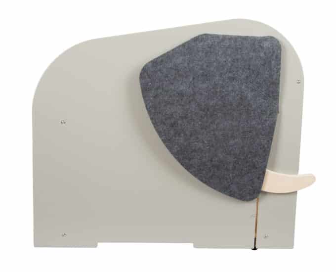 - Design-Merkmale: Elefantenform mit großen Filzohren, hoher sichtbarer Holzanteil