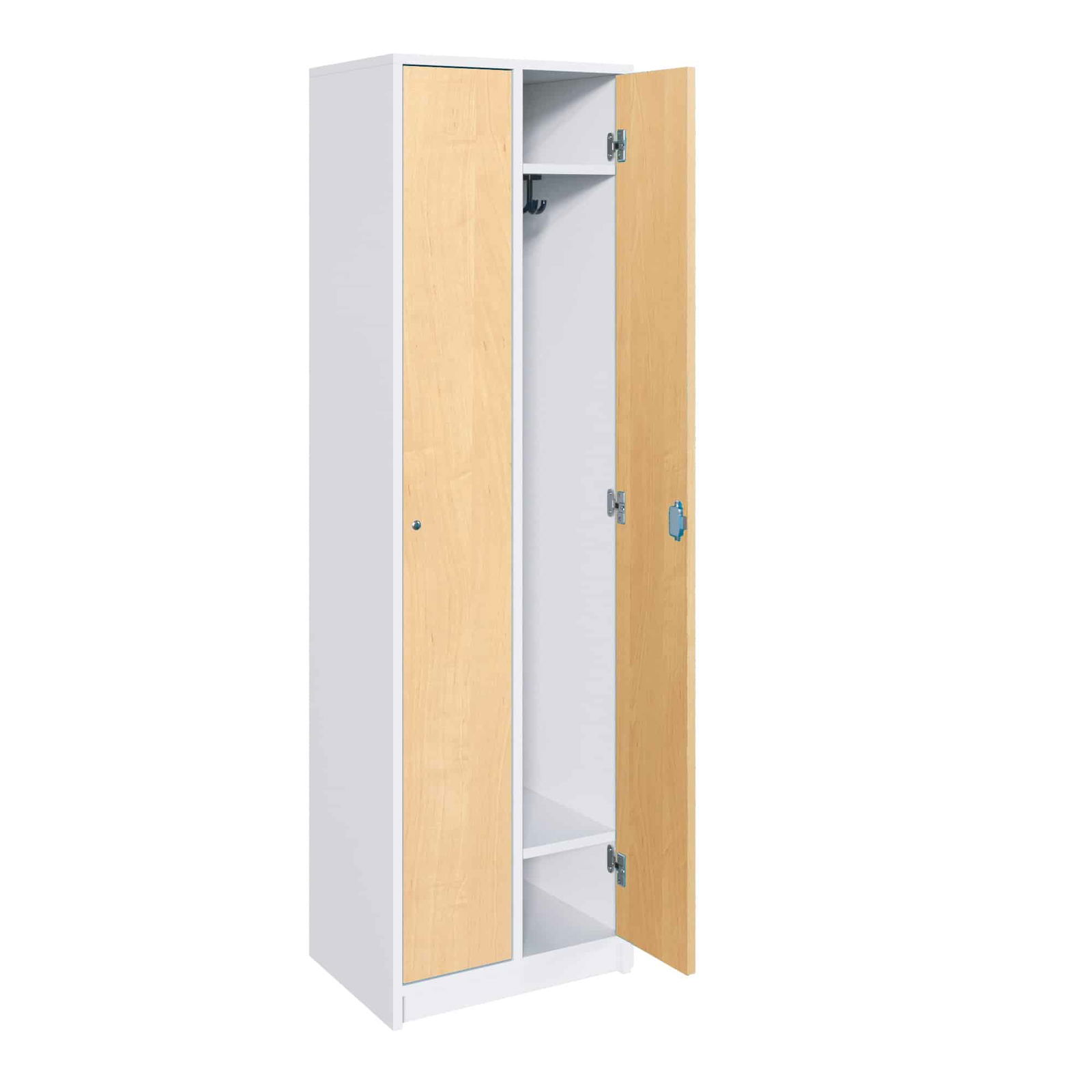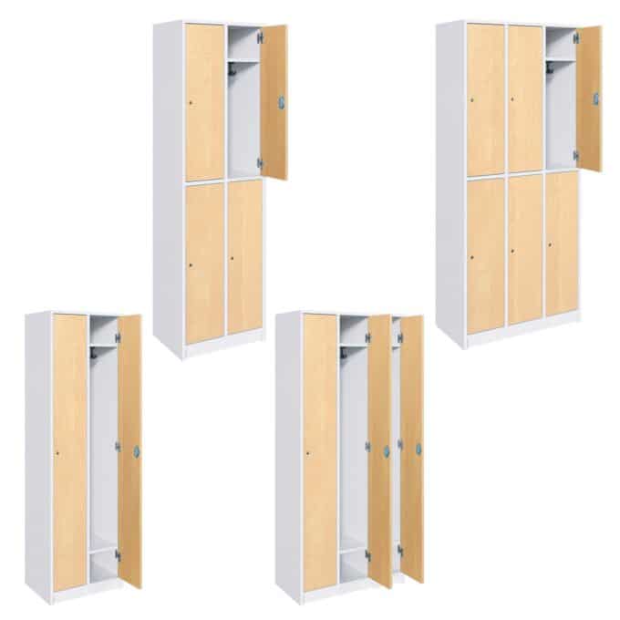 - Individuell anpassbares Design: Gestalten Sie die Schränke passend zu Ihrem Raumkonzept. Sie können das Dekor für den Korpus und die Türen getrennt aus einer breiten Palette an Farben und Mustern auswählen. Auch die Farbe der Dreifachhaken ist wählbar. So entsteht eine Garderobenlösung, die sich harmonisch in die Umgebung einfügt.