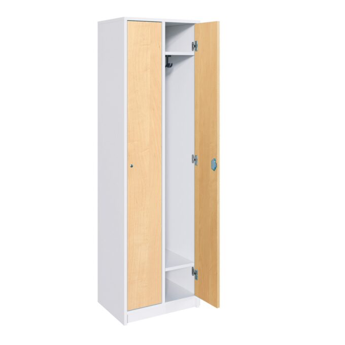 - Individuell anpassbares Design: Gestalten Sie die Schränke passend zu Ihrem Raumkonzept. Sie können das Dekor für den Korpus und die Türen getrennt aus einer breiten Palette an Farben und Mustern auswählen. Auch die Farbe der Dreifachhaken ist wählbar. So entsteht eine Garderobenlösung, die sich harmonisch in die Umgebung einfügt.