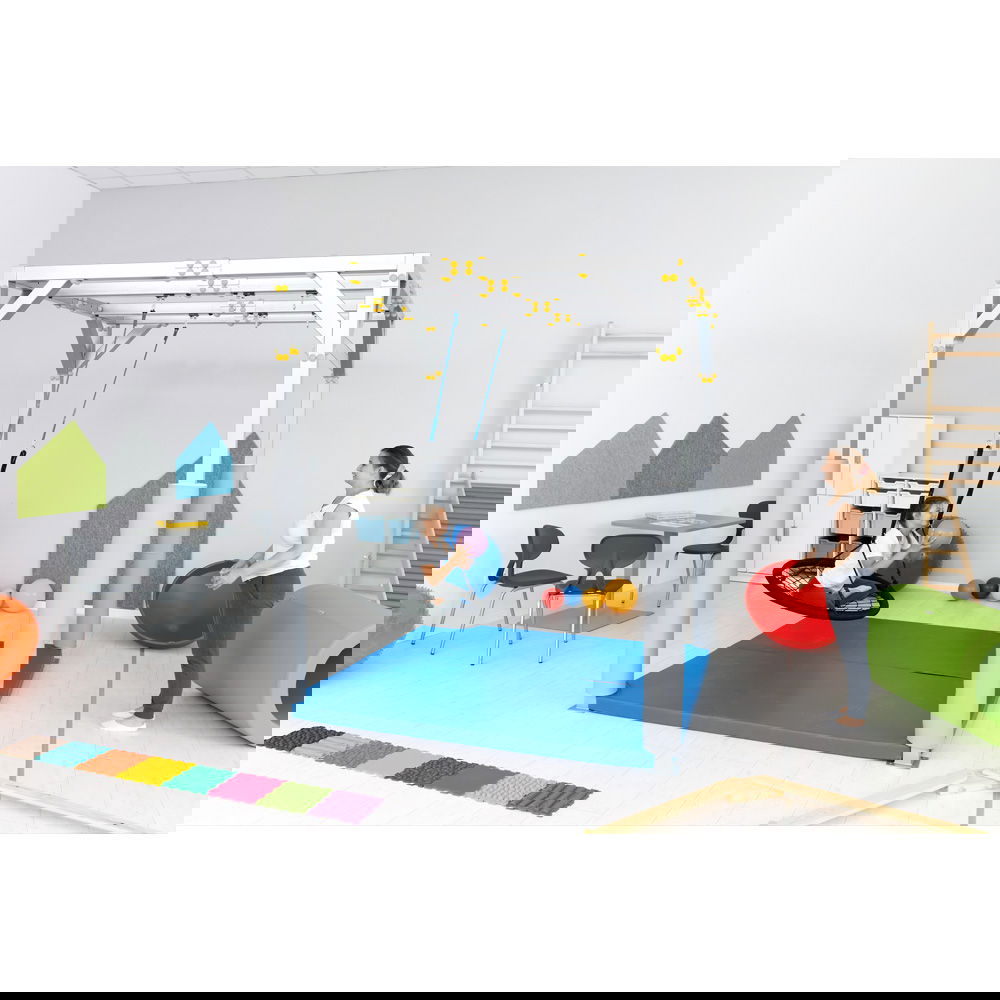 Kinder lieben es, zu schaukeln. Doch hinter diesem Vergnügen steckt weit mehr als nur ein einfacher Zeitvertreib. Unsere Spinnennetzschaukel mit gepolstertem Rand ist ein durchdachtes Medizinprodukt, das speziell für den professionellen Einsatz in der Therapie und Rehabilitation entwickelt wurde. Sie fügt sich perfekt in unser SI-Therapiezentrum (092994PU) ein und bietet Therapeuten ein vielseitiges Werkzeug, um die motorische Entwicklung von Kindern gezielt zu unterstützen.