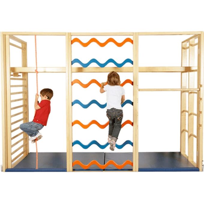 Die Rahmen sind aus Nadelholz und haben eine Breite von 100 cm, die Sprossen bestehen aus Hartholz. Die Gesamthöhe der Turnwände beträgt 225 cm. Die Lieferung erfolgt komplett mit Montagematerial zur Wandmontage. Turnwände – Früh übt sich, wer hoch hinaus will!