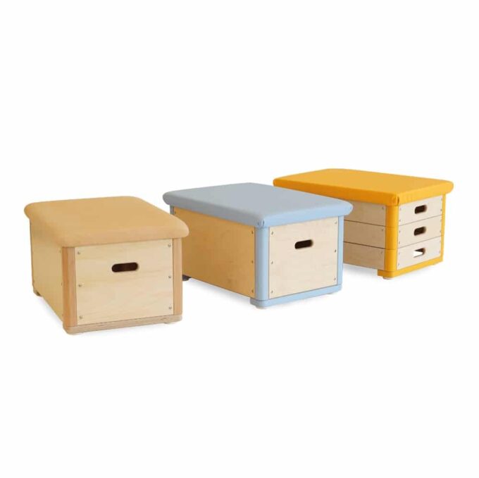 Die Sprungkästen bestehen aus Kiefer oder aus Birke Multiplex, ihre Oberfläche ist fein geschliffen und mit umweltfreundlichem Wasserlack lackiert. Optimale Standfestigkeit garantieren die Multiplex Standfüße mit nichtfärbenden Gummipuffern. Die Sprungkästen sind gepolstert und wahlweise mit Kernrindleder oder Kunstleder lieferbar. Aussparungen im Kastendeckel sind zum Einhängen von Turnbänken vorgesehen (bitte separat bestellen).