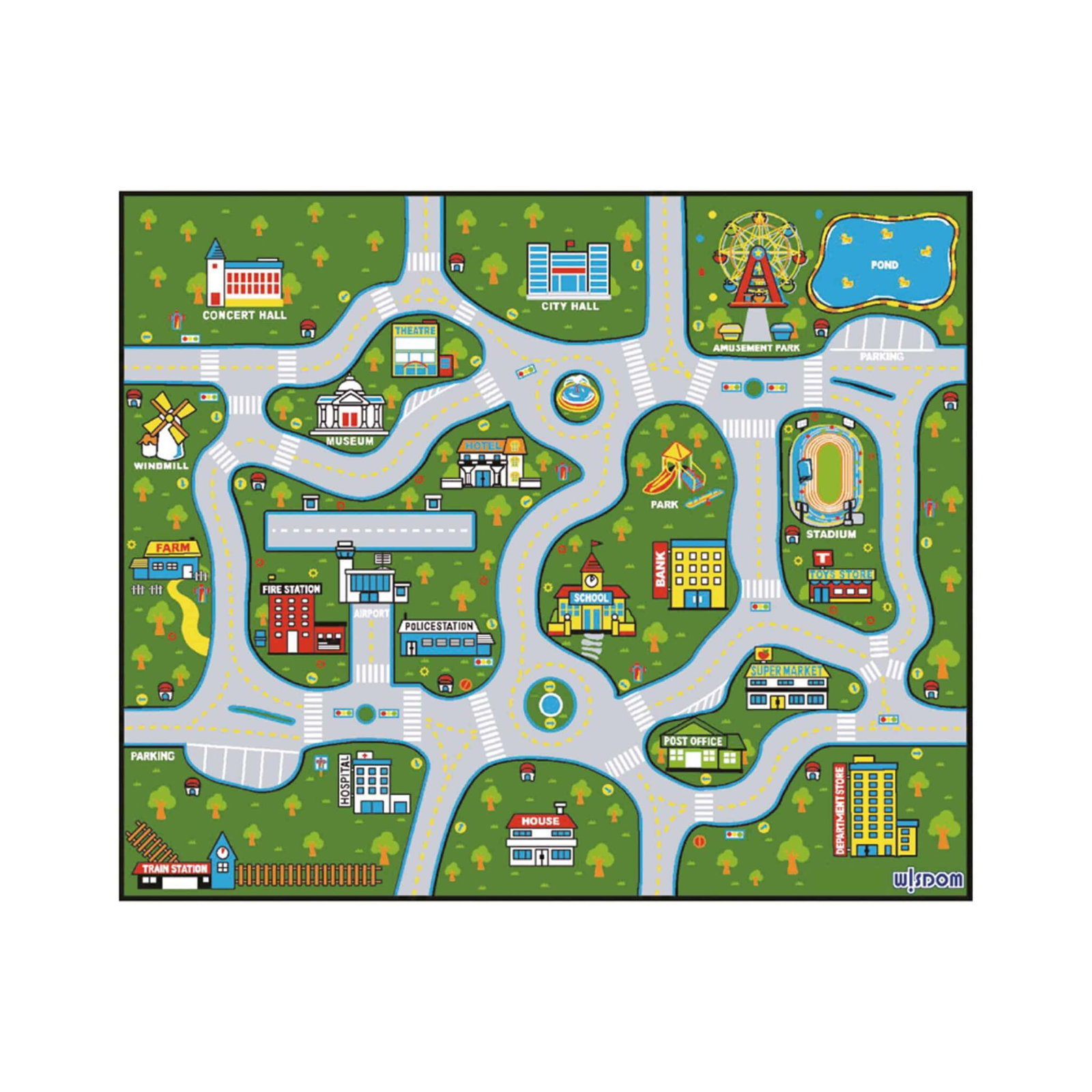 Der Stadtplan-Spielteppich ist mehr als nur ein schöner Teppich – er dient auch als hervorragendes Werkzeug, um Kindern Verkehrsregeln und Verkehrssicherheit beizubringen. Während sie mit ihren Fahrzeugen über den Teppich fahren, lernen sie spielerisch, wie Straßen funktionieren und welche Regeln im Straßenverkehr wichtig sind. Ein echtes Highlight für Vorschulen und Kindergärten!