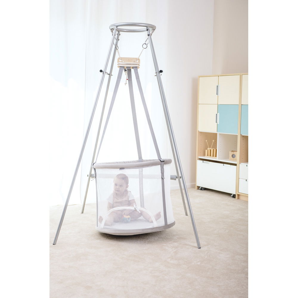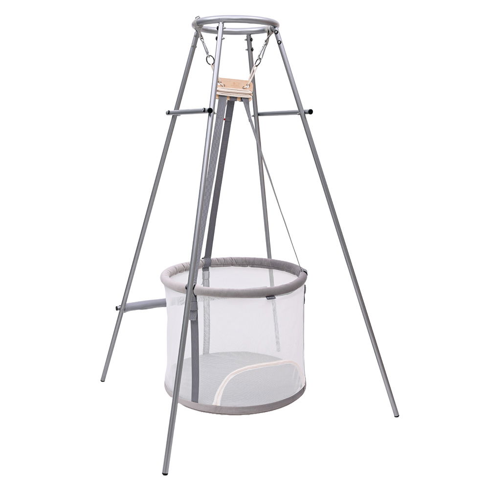 Die beachtliche Höhe von 195,5 Zentimetern sorgt dafür, dass der Korb optimal frei schwingen kann. So entfaltet das Memola-System seine volle sensorische Wirkung. Das Kind kann die wichtigen Pendelbewegungen ungestört genießen, was die Körperwahrnehmung und den Gleichgewichtssinn nachhaltig fördert. Zudem lässt sich der Ständer hervorragend mit weiterem Zubehör, wie etwa dem passenden Überwurf-Zelt, kombinieren. So wird aus dem robusten Gestell im Handumdrehen eine gemütliche, abgedunkelte Höhle zum Kuscheln und Träumen.