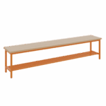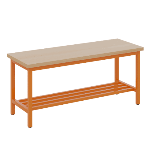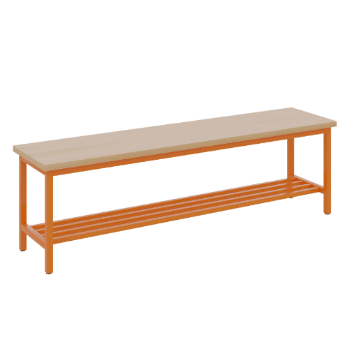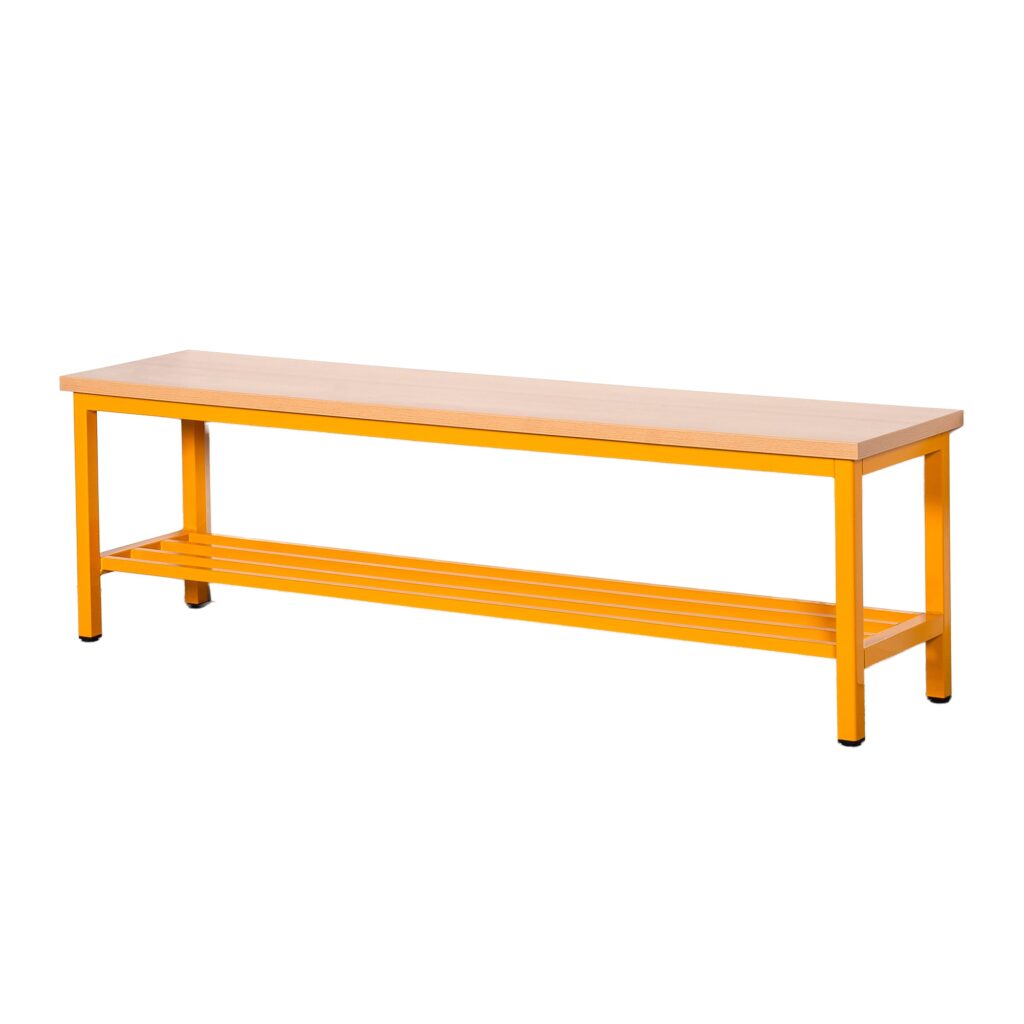 Die Umkleidebank einseitig mit Schuhrost und Sitzfläche Melamin ist die durchdachte Komplettlösung für alle Umkleidebereiche in Bildungseinrichtungen. Diese praktische Sitzbank verbindet bequemes Sitzen mit intelligenter Schuhaufbewahrung und schafft so Ordnung dort, wo sie am meisten gebraucht wird. Mit ihrer robusten Konstruktion aus melaminharzbeschichteter E1-Feinspanplatte und dem stabilen 4-Fuß-Stahlgestell bietet sie zuverlässigen Komfort für den täglichen Gebrauch. Die drei verfügbaren Längen (100, 150, 200 cm) ermöglichen eine flexible Anpassung an verschiedene Raumgrößen und Nutzerzahlen. Durch die wählbare RAL-Gestellfarbe fügt sich diese Umkleidebank harmonisch in jedes bestehende Farbkonzept ein und wird zum funktionalen wie ästhetischen Highlight jedes Umkleidebereichs.