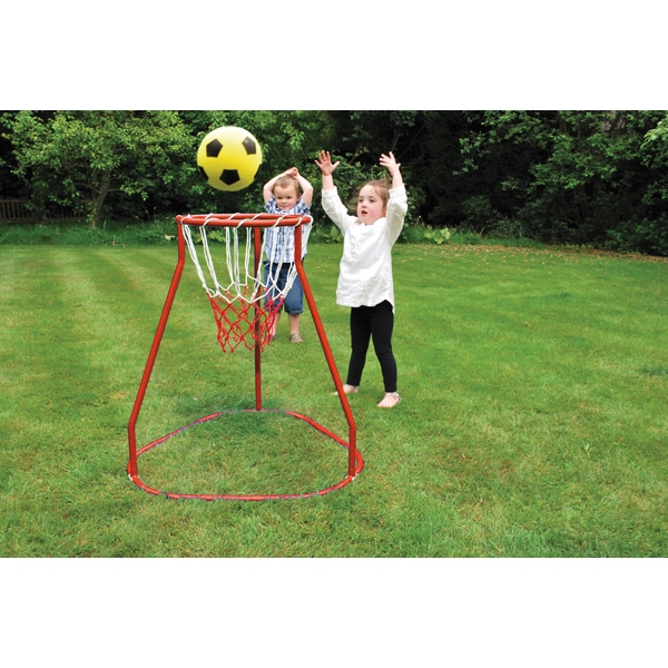 Für den Einsatz drinnen und draußen.- Stabiler Standfuß: Die breite Basis des Gestells (80 x 75 cm) sorgt für einen sicheren und stabilen Stand, sodass der Korb auch bei enthusiastischem Spiel nicht umkippt.