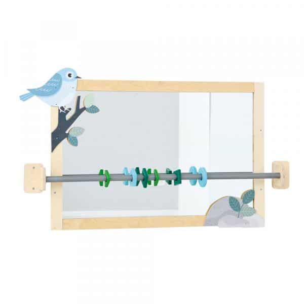 Motorikspiel, das nicht nur kleine Hände, sondern auch die Beine trainiert. Das Kind läuft an der Stange sicher auf und ab. Aus Metall; mit Schiebeelementen aus Holz. Wandhalterungen aus Sperrholz Birke. Länge (131,2 cm) an den Lauflernspiegel (100373) angepasst.