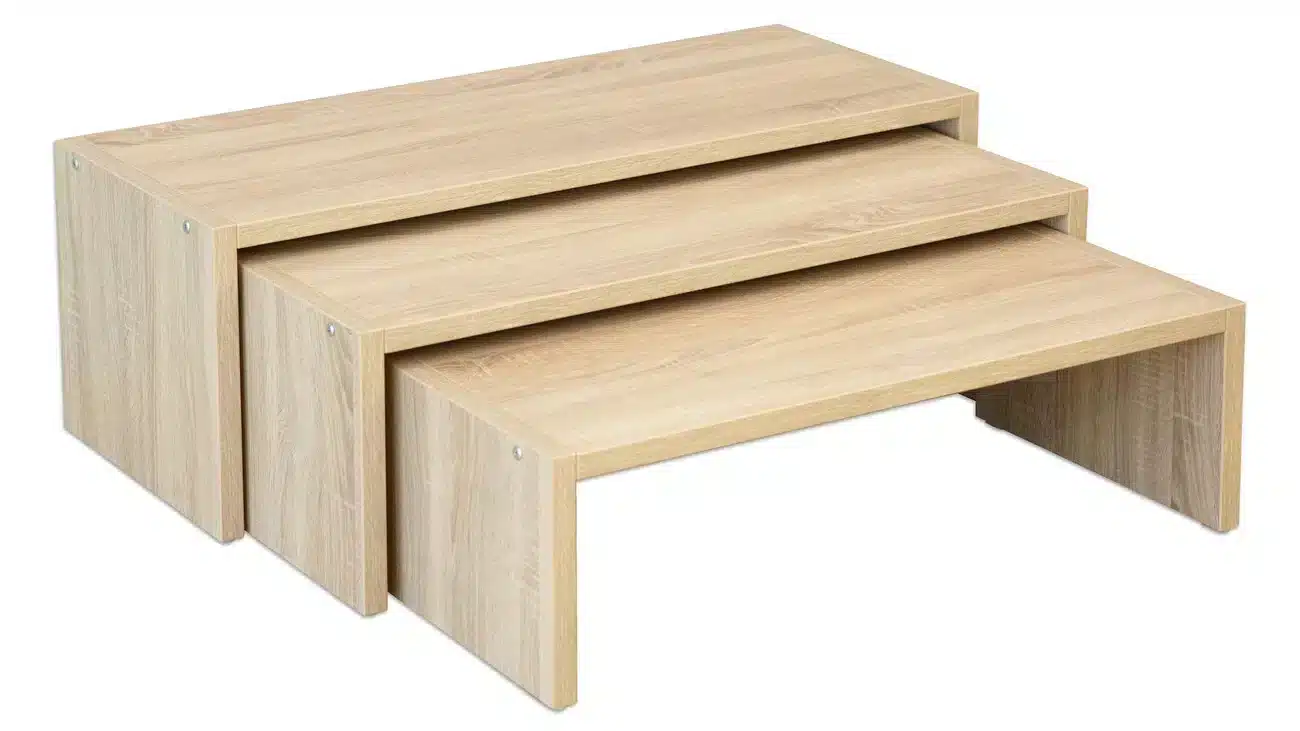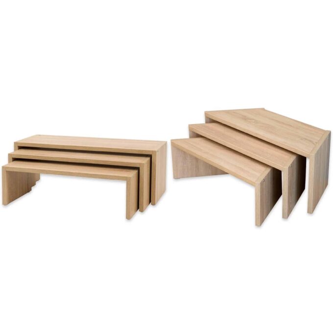 Hergestellt aus hochwertiger Spanplatte, überzeugt das EduCasa Stapelbänke-Set nicht nur durch Funktionalität, sondern auch durch ein modernes Eiche-sägerau-Dekor, das in jede Umgebung passt. Die Bänke sind mit 19 mm dicken Spanplatten ausgestattet, die für ihre Langlebigkeit bekannt sind. Kunststoffe an der Unterseite der Bänke verhindern Kratzer auf dem Boden, während die benutzerfreundliche abwischbare Oberfläche die Reinigung zum Kinderspiel macht.