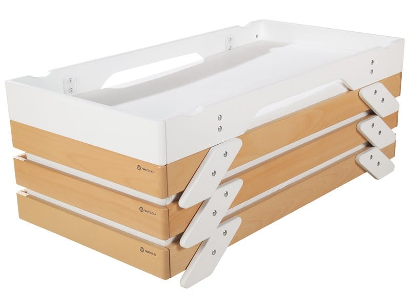 - Die Betten können für ein leichtes Verstauen übereinandergestellt werden.