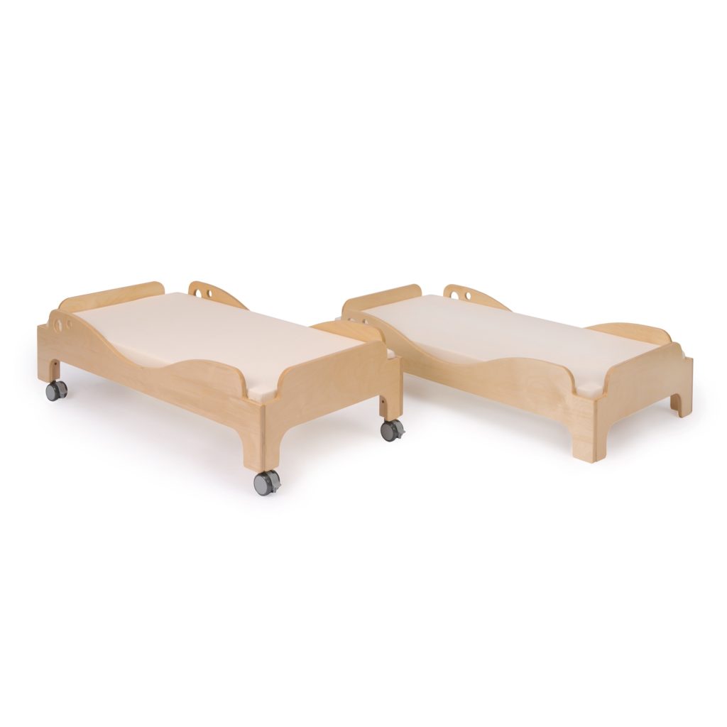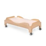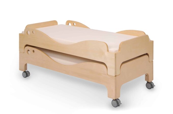 Ein idealer Platz der Entspannung für unsere „Kleinen“ im Kindergarten, Hort oder Krippe. Das Stapelbett ist mit einem Lattenrost ausgestattet und kann mit einer passenden Matratze mit den Maßen 120 x 60 cm hinzugedacht werden. Wir bieten das Krippenbett in zwei Ausführungen an: ohne Rollen oder mit 4 feststellbaren Lenkrollen. Beiden Varianten können gestapelt werden.