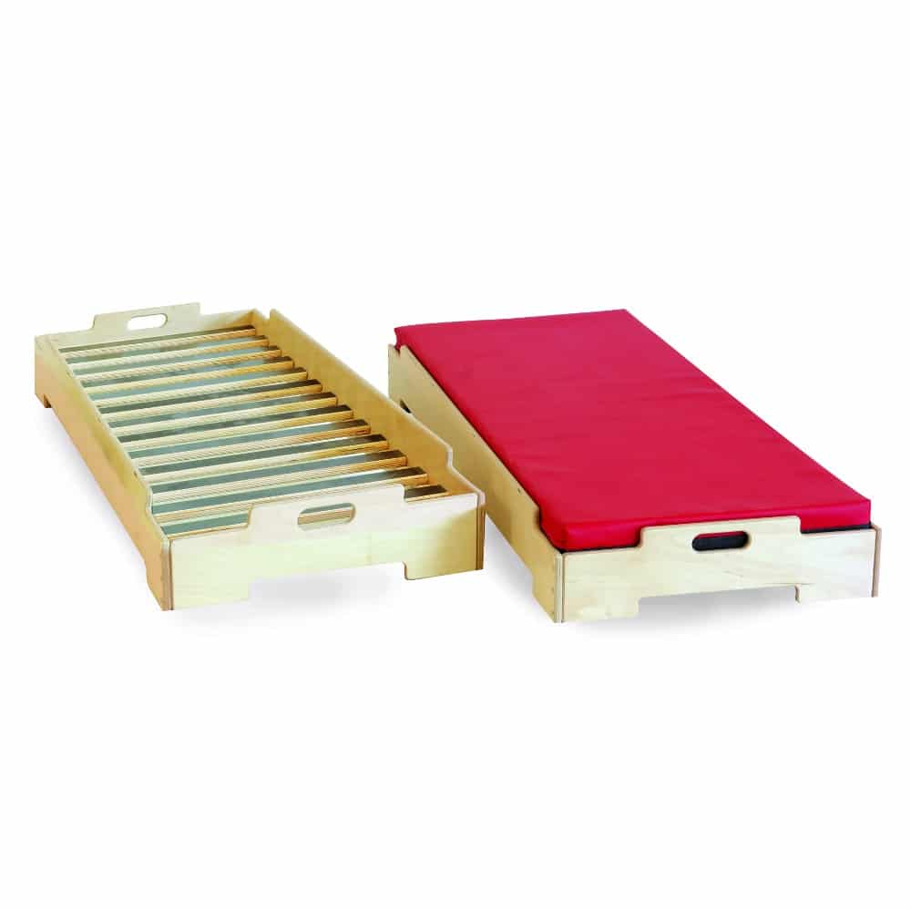 Gut schlafen – Für den Kindergarten oder die Kinderkrippe sind Stapelbetten ideal geeignet. Die Betten haben ein Außenmaß von 140 × 58 × 16 cm und sind stapelbar. Als Matratze passen die Bodenpolster (Art.-Nr.: 400540) mit dem Maß 133 × 54 × 8 cm.