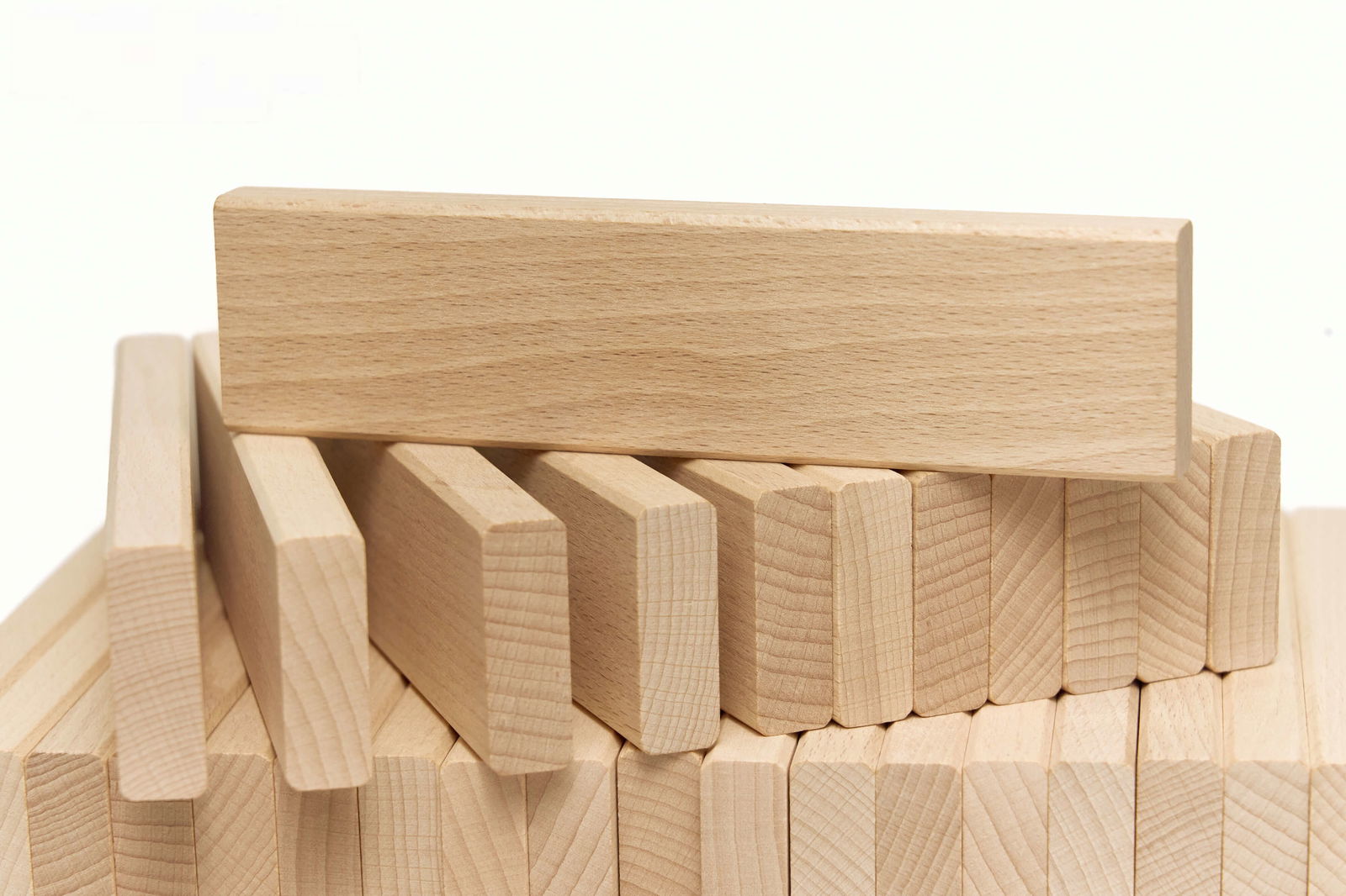 Die Stapelleisten bestehen aus massivem, unbehandeltem Buchenholz. Das macht sie nicht nur extrem robust und langlebig, sondern verleiht ihnen auch eine warme, natürliche Haptik. Dank ihrer klaren Form und der einheitlichen Größe lassen sie sich wunderbar mit anderen vorhandenen Bausteinen kombinieren und erweitern so die Spielmöglichkeiten im Baubereich. - Reduziert auf das Wesentliche