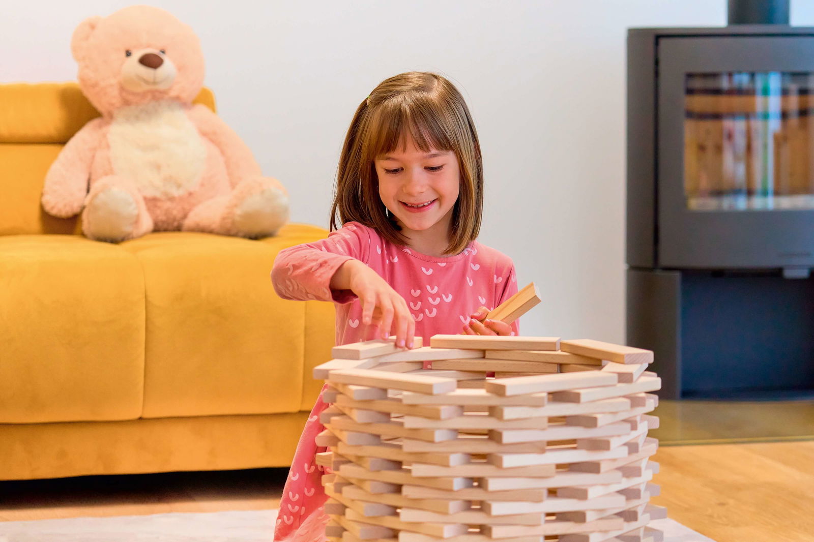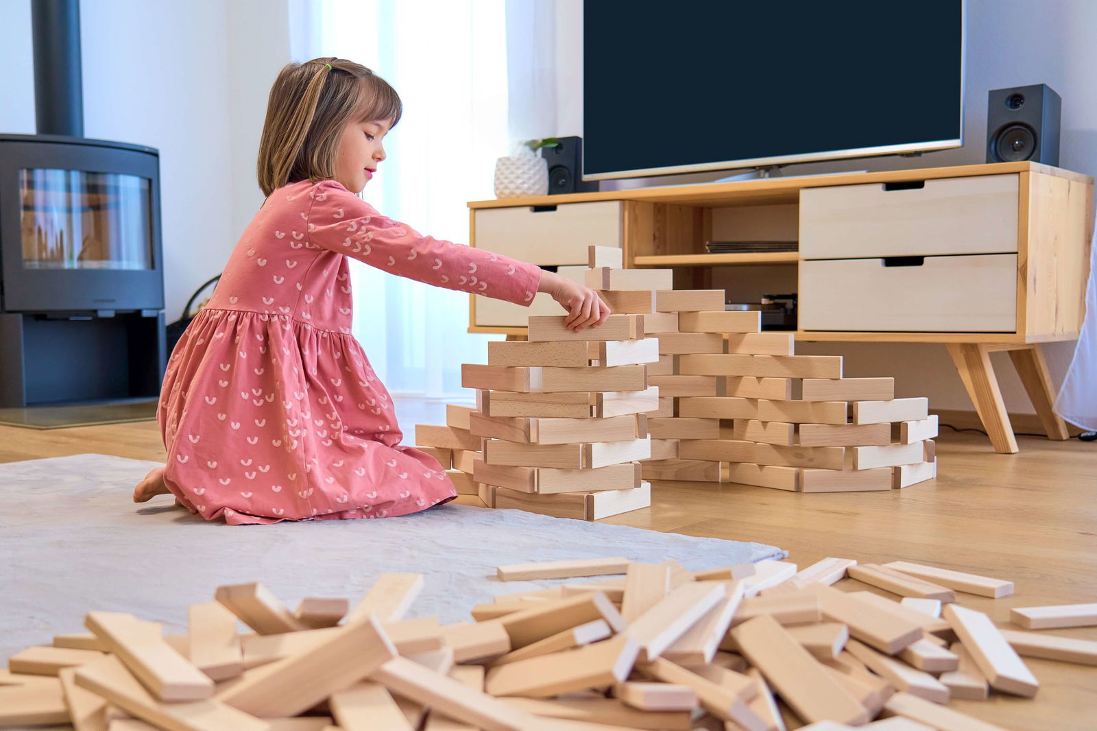 Das präzise Aufeinandersetzen der Leisten, besonders im Hochkant-Verbau, erfordert eine ruhige Hand und Geschicklichkeit. Kinder trainieren dabei ihre Hand-Auge-Koordination, die Fingerfertigkeit und ihre Konzentrationsfähigkeit. Jeder gebaute Turm ist ein Erfolgserlebnis, das die Ausdauer stärkt und zu neuen Versuchen motiviert. - Vielseitig kombinierbar und langlebig