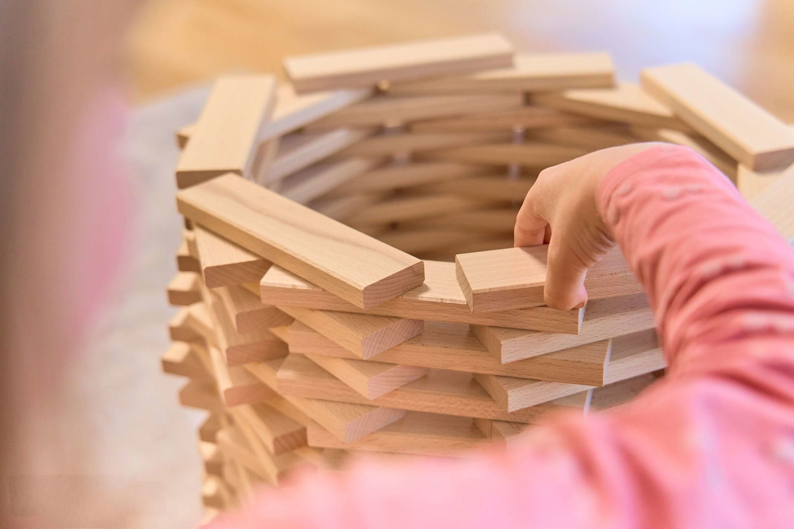 Ohne Farben, Magnete oder komplizierte Verbindungen lenkt dieses Spielzeug die Aufmerksamkeit auf das Wesentliche: die Form, das Material und die unendlichen Möglichkeiten der Konstruktion. Diese Einfachheit fördert die Fantasie und lässt Raum für eigene Ideen und Entdeckungen.