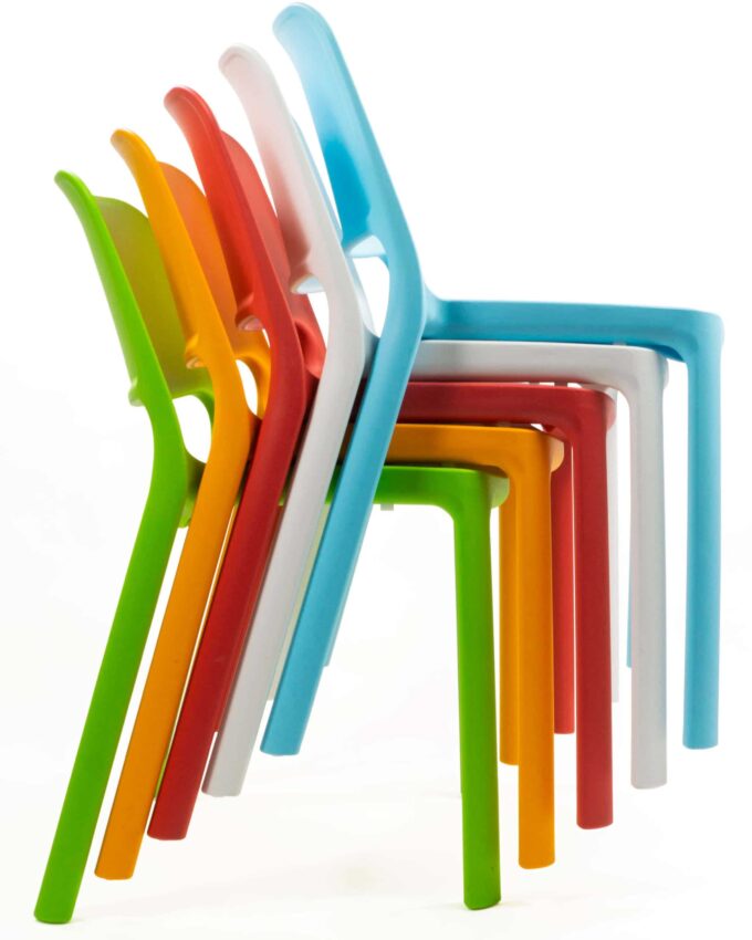 100% Polypropylen, UV- und wetterbeständig, outdoorgeeignet, stapelbar (bis zu 5 Stühle)