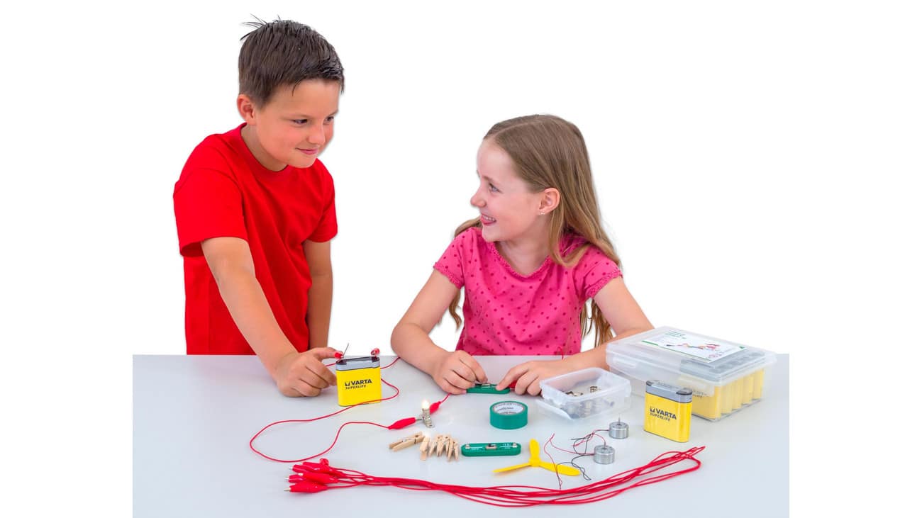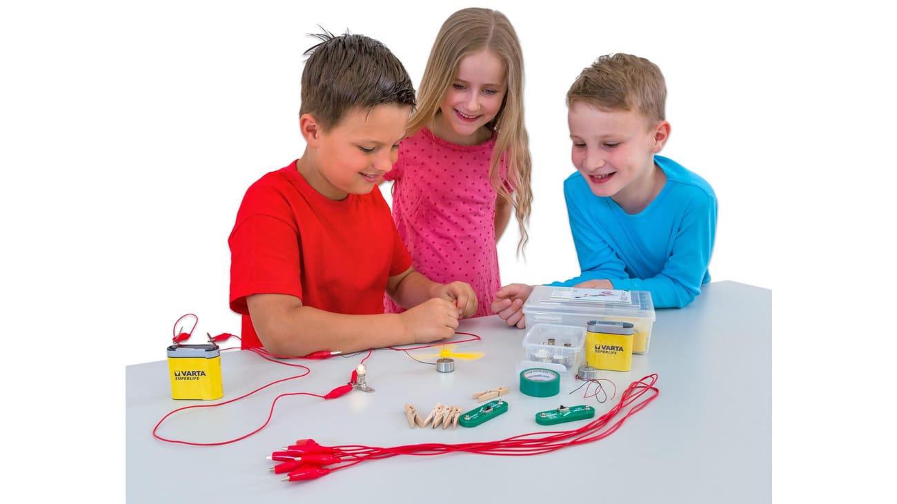 Mit den 48 Stationenkarten und den dazugehörigen Arbeitsblättern können die Kinder ihre Beobachtungen und Ergebnisse festhalten. Alle Versuche sind sicher, da sie mit 4,5 V-Flachbatterien durchgeführt werden.
