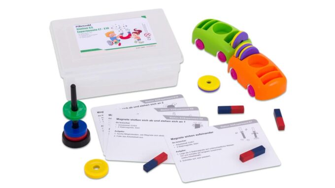 Die Stationenkiste ermöglicht Ihnen, ohne lange Vorbereitungen sofort in den Unterricht zu starten. Jedes Material ist bereits detailliert ausgearbeitet und vorbereitet. Einfach die Kiste öffnen, die Stationen aufbauen und die Kopiervorlagen verteilen – schon kann es losgehen! Ihre Schülerinnen und Schüler werden in kleinen Gruppen aktiv arbeiten und spielerisch die Eigenschaften von Magneten und ihre Anwendungen kennenlernen.