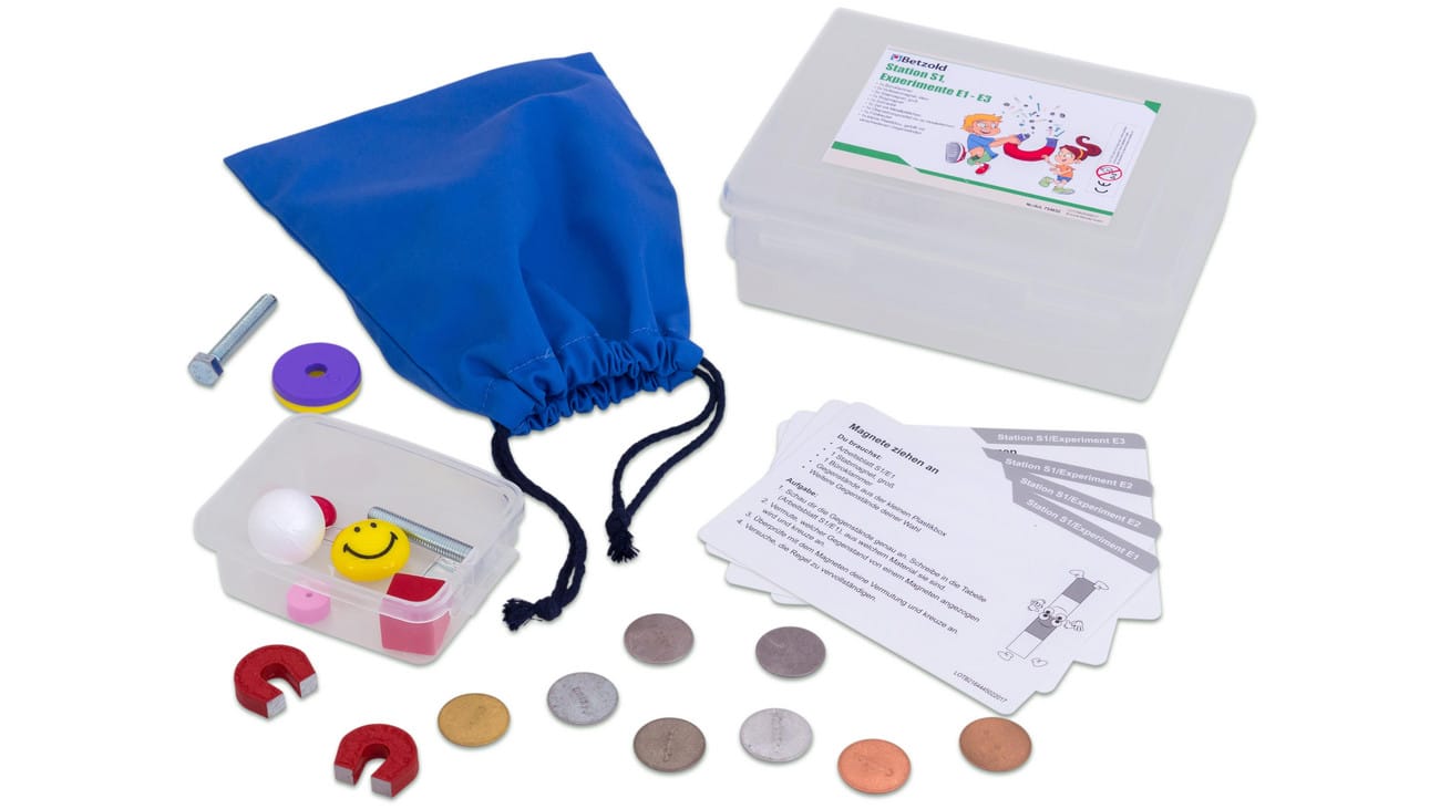 Willkommen zur Betzold Stationenkiste „Magnetismus und Kompass“! Diese umfassende Sammlung ist der perfekte Begleiter für Ihren naturwissenschaftlichen Unterricht und bietet Ihnen die Möglichkeit, das spannende Thema Magnetismus auf eine interaktive und unterhaltsame Weise zu erkunden. Mit 7 ausgearbeiteten Stationen und insgesamt 27 Einzelexperimenten wird das Lernen zu einem echten Erlebnis!