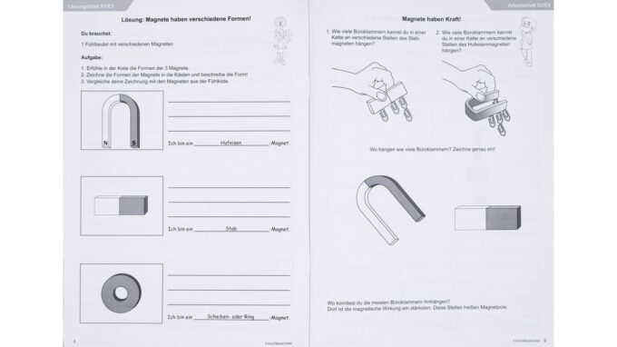 Die Einführung in das Thema erfolgt über eine spannende Vorlesegeschichte, in der die Geschwister Magnus und Ida die Faszination des Magnetismus entdecken. So wird das Interesse der Kinder geweckt und sie sind motiviert, an den verschiedenen Stationen zu tüfteln und ihre Ergebnisse festzuhalten.
