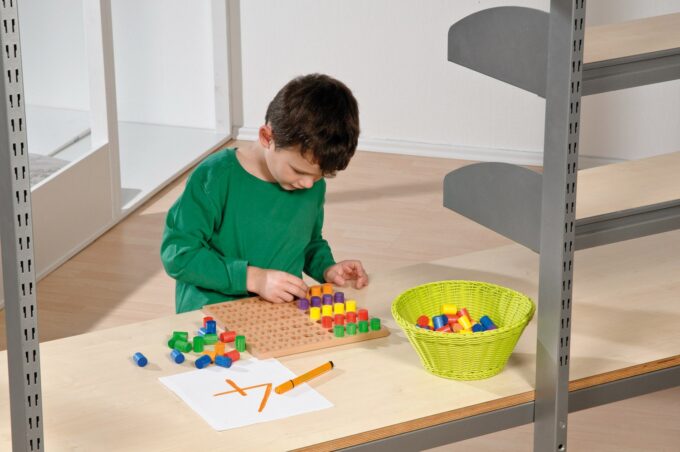 - Konzentrationsförderung: Das ruhige Arbeiten am Steckbrett hilft dabei, die Aufmerksamkeitsspanne zu verlängern und sich auf eine Tätigkeit zu fokussieren.
