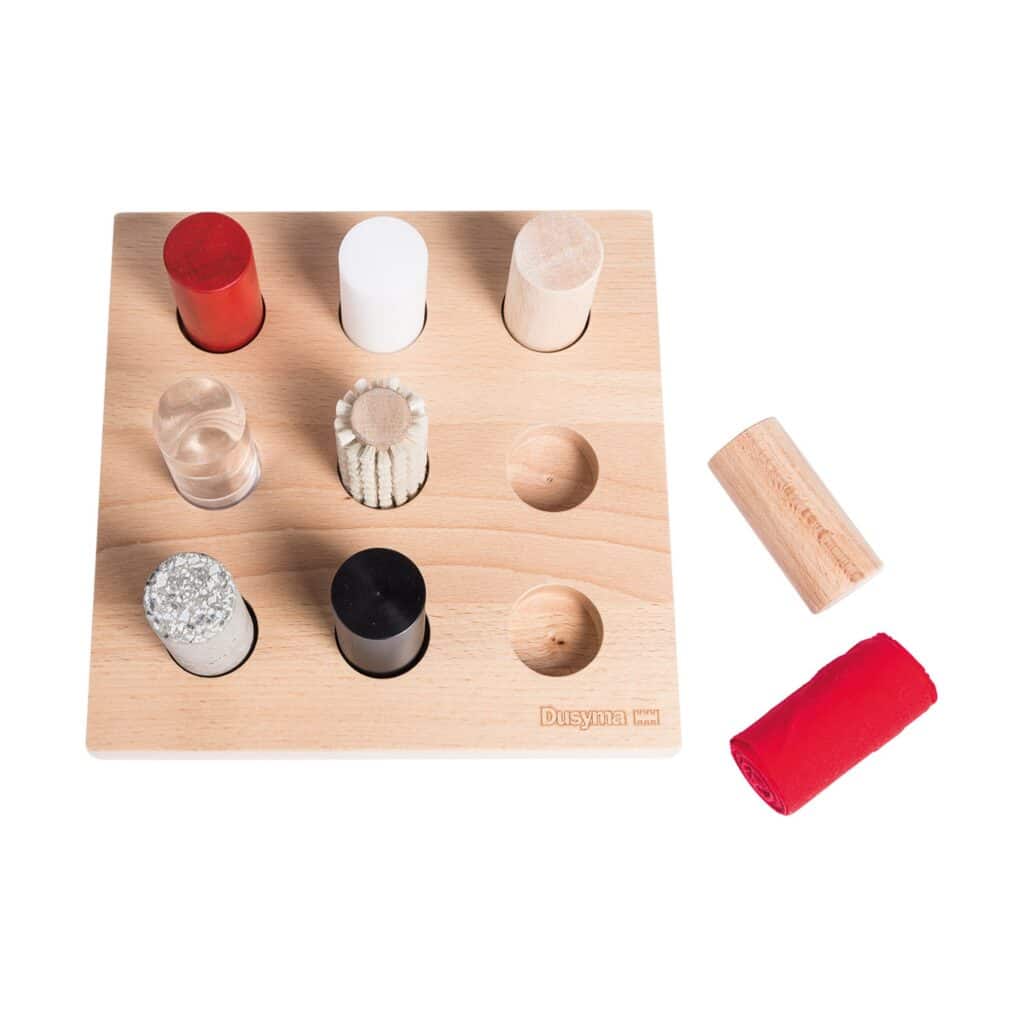 Das Steckbrett Materialerfahrung von Dusyma ist ein faszinierendes Lernspielzeug, das speziell für Kinder ab 12 Monaten konzipiert wurde. Dieses einzigartige Spielmaterial bietet den Kleinsten die Möglichkeit, unterschiedlichste Materialien durch Tasten, Greifen und Stecken zu entdecken. Die verschiedenen Stecker bestehen aus einer Vielzahl von Materialien wie Holz, Beton, Acryl und Ziegenhaar, wodurch Kinder spielerisch ihre sensorischen Fähigkeiten entwickeln können. Mit seinem klaren, zeitlosen Design und den hochwertigen Materialien ist das Steckbrett eine Bereicherung für jedes Kinderzimmer oder pädagogische Einrichtung.
