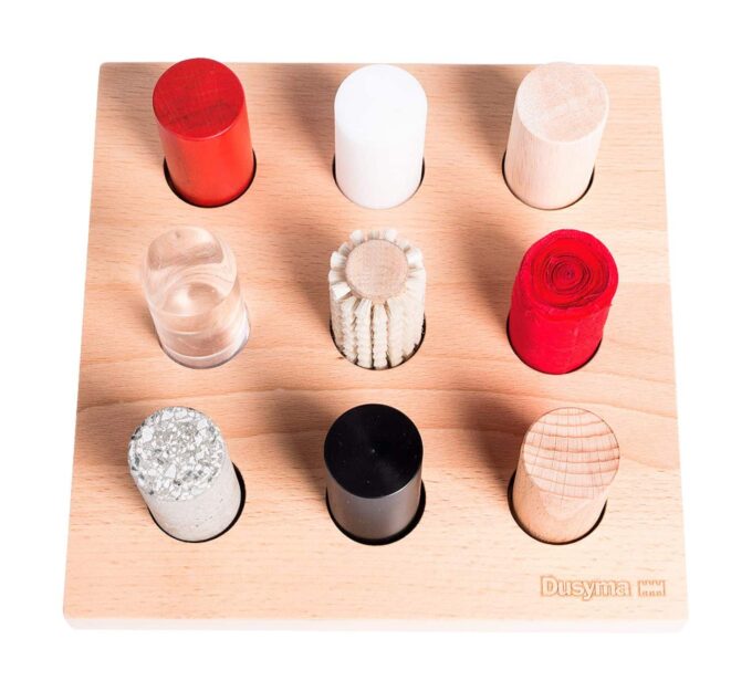 Das Steckbrett Materialerfahrung von Dusyma ist ein faszinierendes Lernspielzeug, das speziell für Kinder ab 12 Monaten konzipiert wurde. Dieses einzigartige Spielmaterial bietet den Kleinsten die Möglichkeit, unterschiedlichste Materialien durch Tasten, Greifen und Stecken zu entdecken. Die verschiedenen Stecker bestehen aus einer Vielzahl von Materialien wie Holz, Beton, Acryl und Ziegenhaar, wodurch Kinder spielerisch ihre sensorischen Fähigkeiten entwickeln können. Mit seinem klaren, zeitlosen Design und den hochwertigen Materialien ist das Steckbrett eine Bereicherung für jedes Kinderzimmer oder pädagogische Einrichtung.