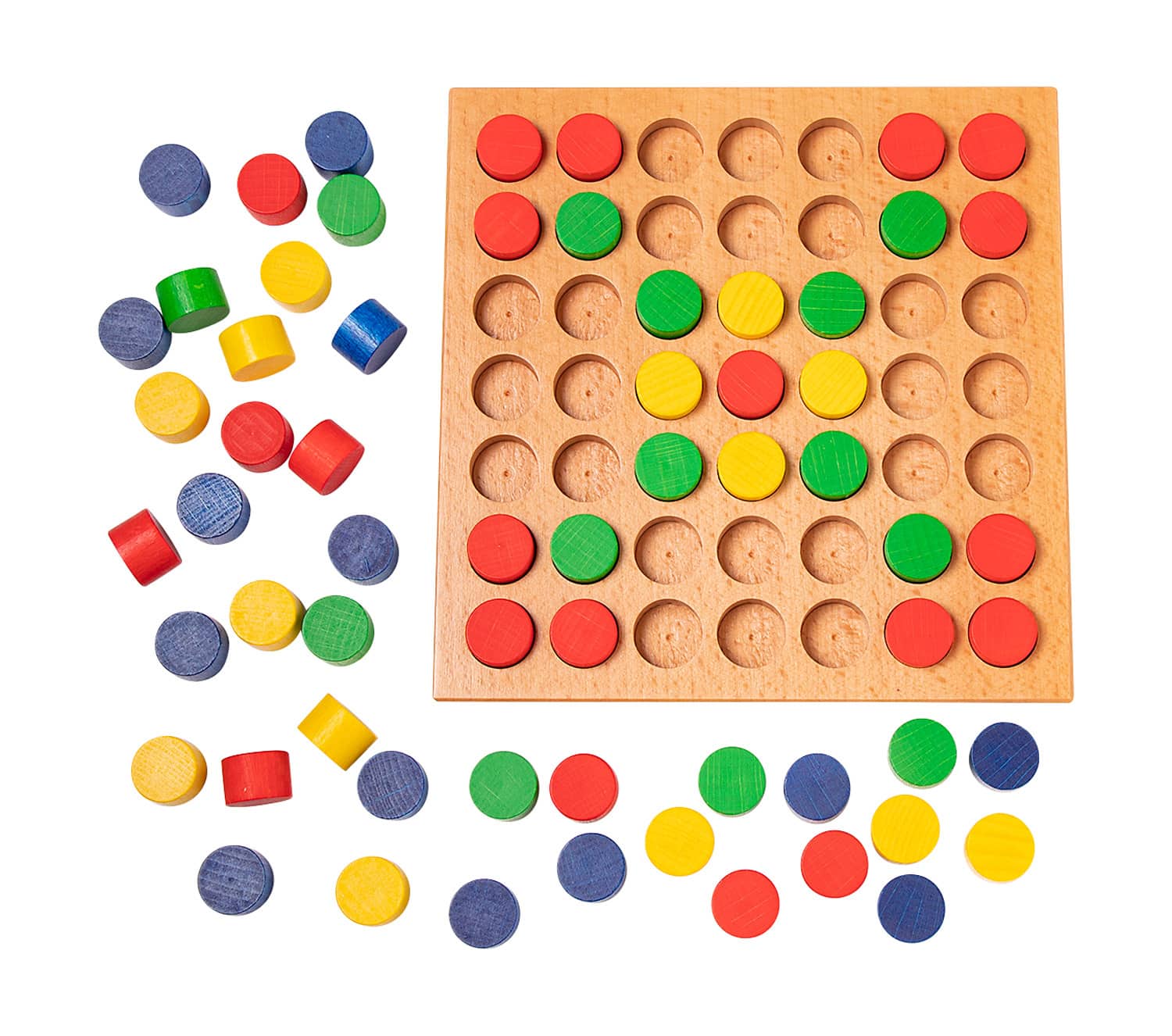 Dieses pädagogisch wertvolle Spielzeug, das mit dem „Spielgut“-Siegel ausgezeichnet wurde, überzeugt nicht nur durch die hochwertige Verarbeitung aus lackiertem Hartholz, sondern auch durch unendliche Spielideen. Kinder können Muster, Formen und Farben kombinieren und dabei ihre Feinmotorik und ihr räumliches Denken stärken.