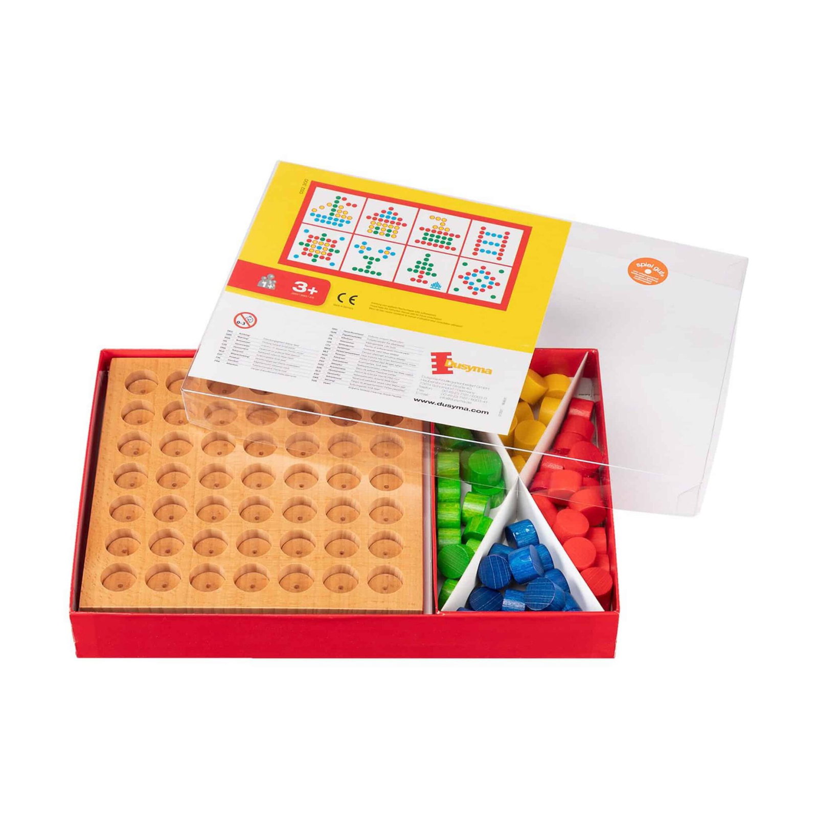 - Vielseitige Nutzung: Egal, ob Kinder einfache Reihen oder komplexe Muster stecken möchten – das Steckmosaik bietet unzählige Gestaltungsmöglichkeiten.