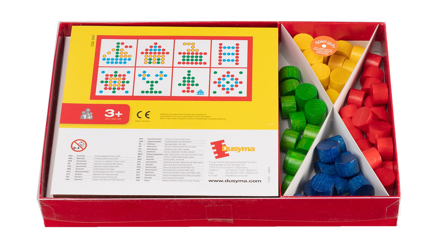 - „Spielgut“-Siegel: Die Auszeichnung bestätigt den pädagogischen Wert und die Qualität des Steckmosaiks.