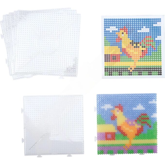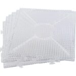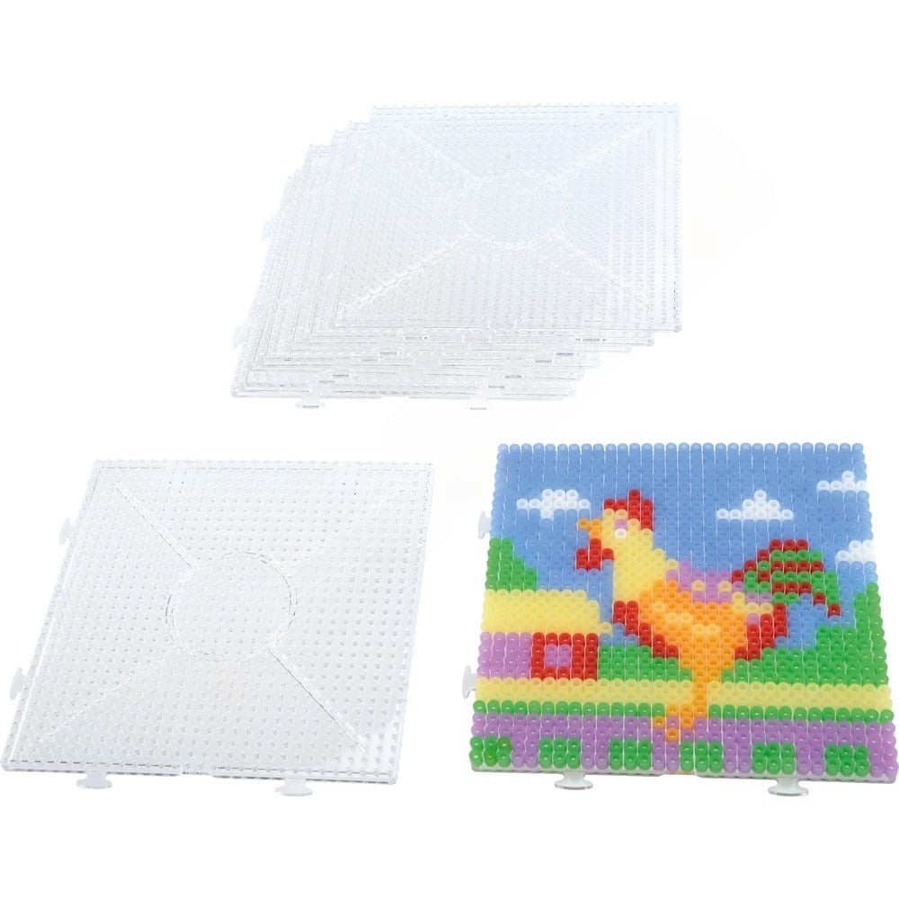 Bastelarbeiten mit Bügelperlen machen nicht nur großen Spaß, sie fördern auch die Feinmotorik und die Kreativität der Kinder. Einfach die Bügelperlen (0,5 cm, separat erhältlich) auf die transparenten Platten stecken. Dank der durchsichtigen Kunststoffoberfläche können untergelegte Musterkarten (Artikelnummer 652005, separat bestellbar) gut sichtbar platziert werden. Die Platten sind sowohl einzeln als auch beliebig miteinander verbindbar, sodass Sie große Flächen schaffen können. Zum Beispiel entsteht bei 2×5 Platten eine Gesamtfläche von 30 x 75 cm! Ideal für gemeinsame Bastelstunden mit bis zu 10 Kindern!