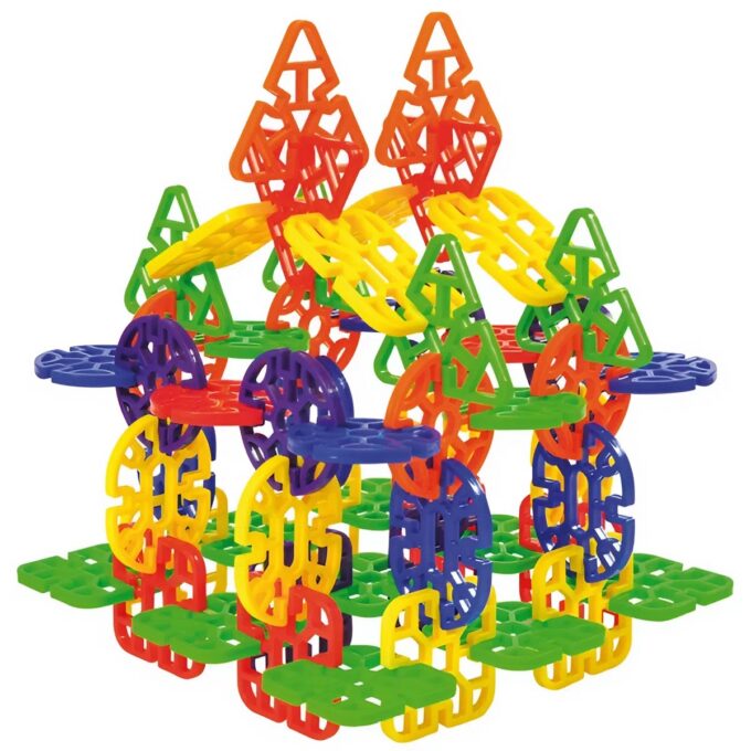 - Mehrdimensionales Bauen: Anders als beim klassischen Stapeln müssen Kinder hier überlegen, wie sich verschiedene Formen (Quadrat, Kreis, Dreieck etc.) stabil verbinden lassen. Das schult das räumliche Vorstellungsvermögen enorm.