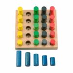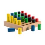 - Gezieltes Greifen und Stecken: Die perfekt geformten Walzenstecker in unterschiedlichen Größen und Längen fordern Kinder dazu auf, präzise Bewegungen auszuführen. Dies stärkt die Hand-Auge-Koordination und fördert die Entwicklung der Feinmotorik.