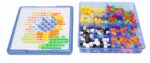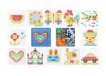 Das Figurino Steckspiel beinhaltet eine Box mit einer gitterförmigen und abnehmbaren Steckplatte. Zusätzlich sind 490 bunte Mosaiksteine und sechs Vorlagekarten im Lieferumfang enthalten. Die doppelseitig bedruckten Karten bieten insgesamt zwölf verschiedene Muster und motivieren die Kinder, die Bilder nachzustecken. Die kindgerechten Motive zeigen unter anderem Schmetterlinge, Autos und Herzen. Die Kinder haben jedoch auch die Möglichkeit, eigene fantasievolle Bilder zu gestalten und ihre kreative Seite zu entfalten.
