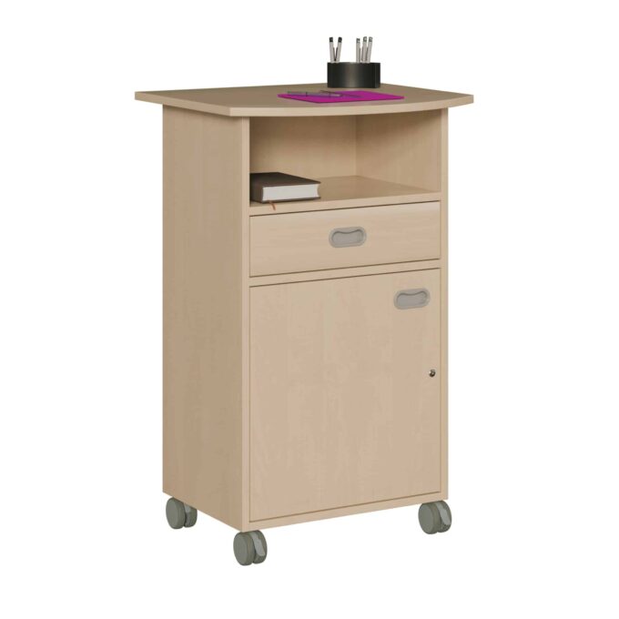 Das Stehpult – mobiler Arbeitsplatz mit Tür revolutioniert die Art, wie Sie in Krippe, Kindergarten und Grundschule arbeiten. Dieses durchdachte Korpus-Stehpult kombiniert die Vorteile ergonomischen Stehens mit der Flexibilität eines fahrbaren Arbeitsplatzes. Mit seiner angenehmen Arbeitshöhe von 110 cm und der praktisch gerundeten Arbeitsplatte ermöglicht es rückenschonendes Arbeiten ohne störende Ecken und Kanten. Das intelligente Stauraumkonzept mit offenem Ablagefach, Schublade und abschließbarem Türfach bietet für jedes Arbeitsmittel den passenden Platz. Dank der stabilen Möbelrollen mit weichem Gummibelag folgt dieser mobile Arbeitsplatz Ihnen dorthin, wo Sie ihn gerade benötigen – und lässt sich ebenso unkompliziert beiseite rollen, wenn mehr Freiraum gewünscht ist.