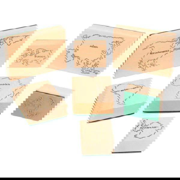 Erkunden Sie spielerisch mit Ihrem Kind die Weiten unserer Welt mit dem Stempelset Weltkarte von Kigata. Gestalten Sie gemeinsam eine farbenfrohe Weltkarte – Bildung und Spaß in einem! Die sieben hochwertigen Stempel aus Holz und Gummi repräsentieren die Konturen aller sieben Kontinente, vervollständigt durch die dazugehörigen Namen. Entdecken Sie, welche Kontinente im Norden liegen, welche westlich oder südlich davon positioniert sind. Nutzen Sie die Stempel, um zu jedem Kontinent wichtige Informationen wie Fläche und Einwohnerzahl zu vermerken und zu lernen, welcher Kontinent der größte ist oder wo die meisten Menschen leben.
