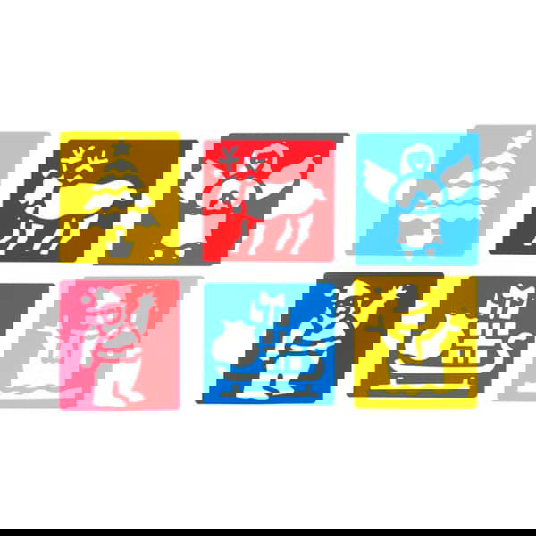 - 6 Schablonen mit unterschiedlichen Weihnachtsmotiven (Weihnachtsbaum, Engel, Weihnachtsmann, Schneemann, Schlitten und Rentier)