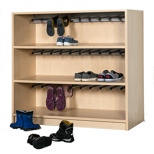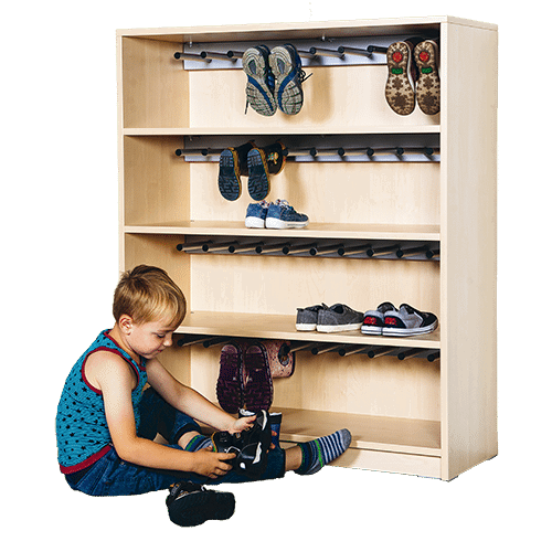 - Maximale Übersichtlichkeit: Jeder Stiefel hat seinen festen Platz. Die offene und klare Anordnung hilft den Kindern, ihr eigenes Schuhwerk schnell wiederzufinden, und fördert so die Selbstständigkeit.