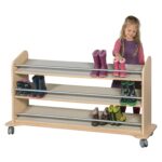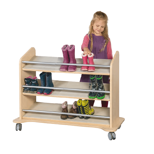 Schluss mit nassen, schmutzigen Stiefeln im Flur! Unser mobiler Stiefelwagen mit drei cleveren Schrägablagen ist die ideale Lösung, um Ordnung und Hygiene in den Eingangsbereich von Kitas und Schulen zu bringen. Gefertigt aus schwer entflammbarem B1-Material und ausgestattet mit extrem widerstandsfähigen Linoleum-Oberflächen, kombiniert dieser Wagen höchste Sicherheit mit praktischer Funktionalität. Er bietet nicht nur eine platzsparende und übersichtliche Aufbewahrung für nasses Schuhwerk, sondern ist dank seiner mobilen Bauweise auch ein flexibler Helfer im Alltag.