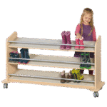 - Sicherer Halt für jedes Schuhwerk: An jedem Boden ist ein pulverbeschichtetes Aluminiumrohr als Rutschsicherung angebracht. Es verhindert zuverlässig, dass Stiefel oder Schuhe von der schrägen Fläche fallen, auch wenn der Wagen bewegt wird.