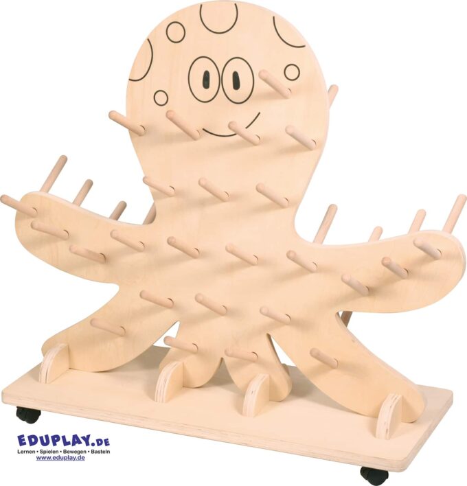 Stiefel hübsch und platzsparend aufräumen … 25 Paar Stiefel können am Stiefel-Kraken zum Trocknen aufgehängt werden. Der mobile Ständer ist beidseitig bestückbar und kann nach Wunsch bemalt oder lackiert werden. Inkl. wasserfestem Holzleim zum Einkleben der Stäbe.