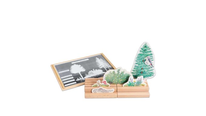 Das innovative Lernspiel besteht aus vier Holzleisten mit Führungsrillen, in die die Waldschicht-Bilder und Tiere flexibel eingesteckt werden können. Die Kinder lernen, wo die verschiedenen Tiere im Ökosystem leben und wie die Wurzelschicht im Erdreich dargestellt wird. Durch das Übereinanderstellen der Leisten können sie die Wurzeln perfekt abbilden und somit den Lebensraum unter der Erde erkunden.