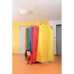 - Bühne frei: Nutzen Sie die Bahnen als Kulisse oder Vorhang für das Puppentheater oder kleine Aufführungen. Die Farben schaffen Atmosphäre und Stimmung.