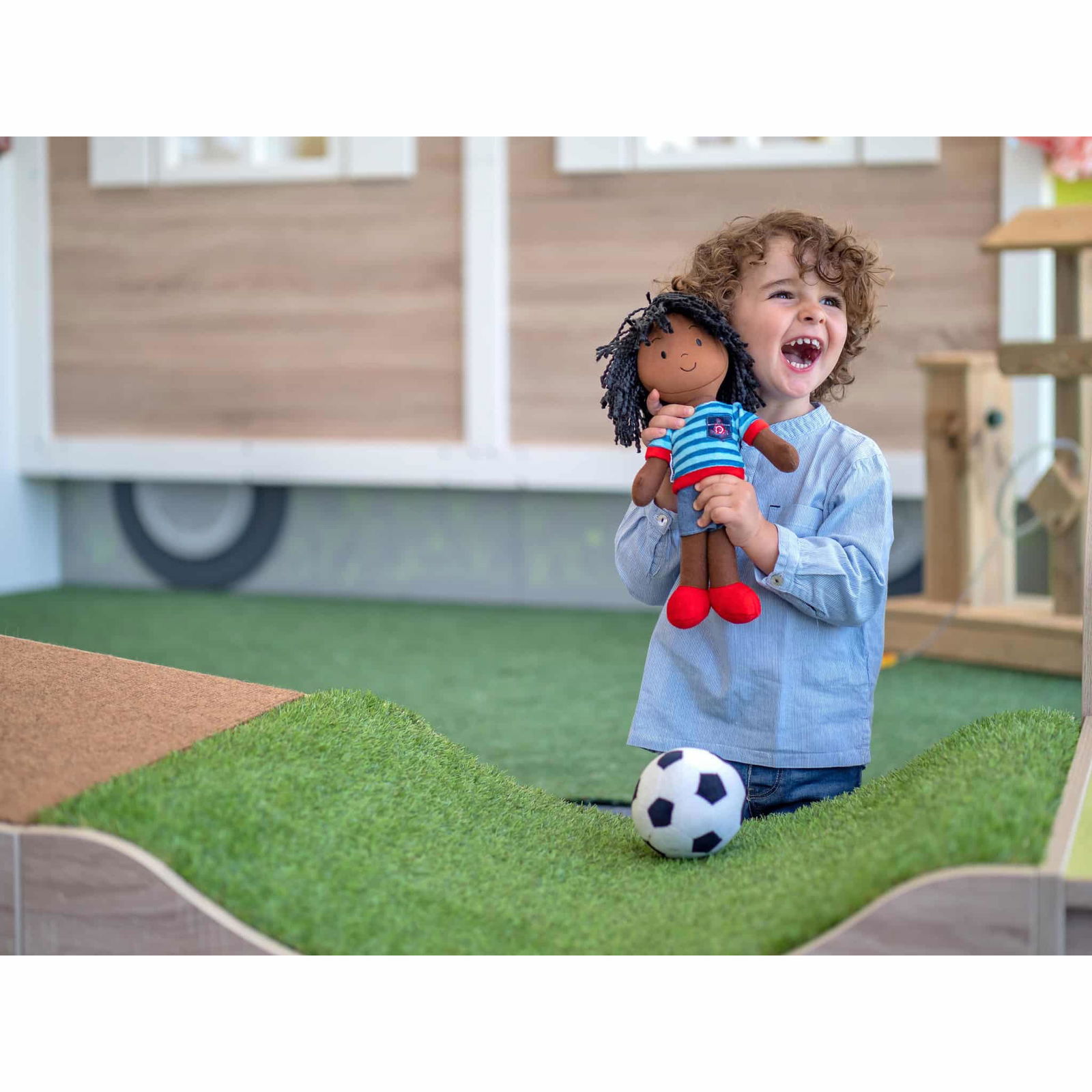 Pablo hat alles, was ein echter Teamplayer braucht. Er trägt seine coolste Kleidung, die fest am Körper vernäht ist – ein stylisches T-Shirt und eine bequeme Hose – und ist bereit für jedes Abenteuer! Ob beim Spielen im Freien, bei lustigen Rollenspielen oder als Begleiter für das erste Sportturnier, Pablo kann es kaum erwarten, mit seinen neuen Freundinnen und Freunden die Welt zu erkunden.