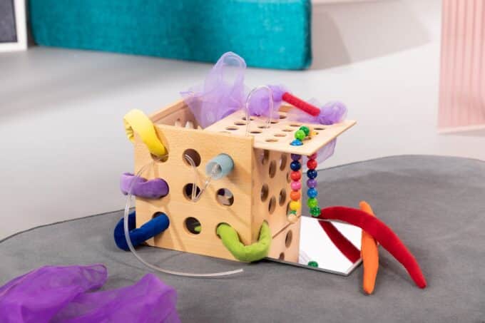 - Fördermaterial für motorische Fähigkeiten: Beim Stecken, Stopfen oder Ziehen können Kleinkinder ihre Feinmotorik trainieren und verbessern.