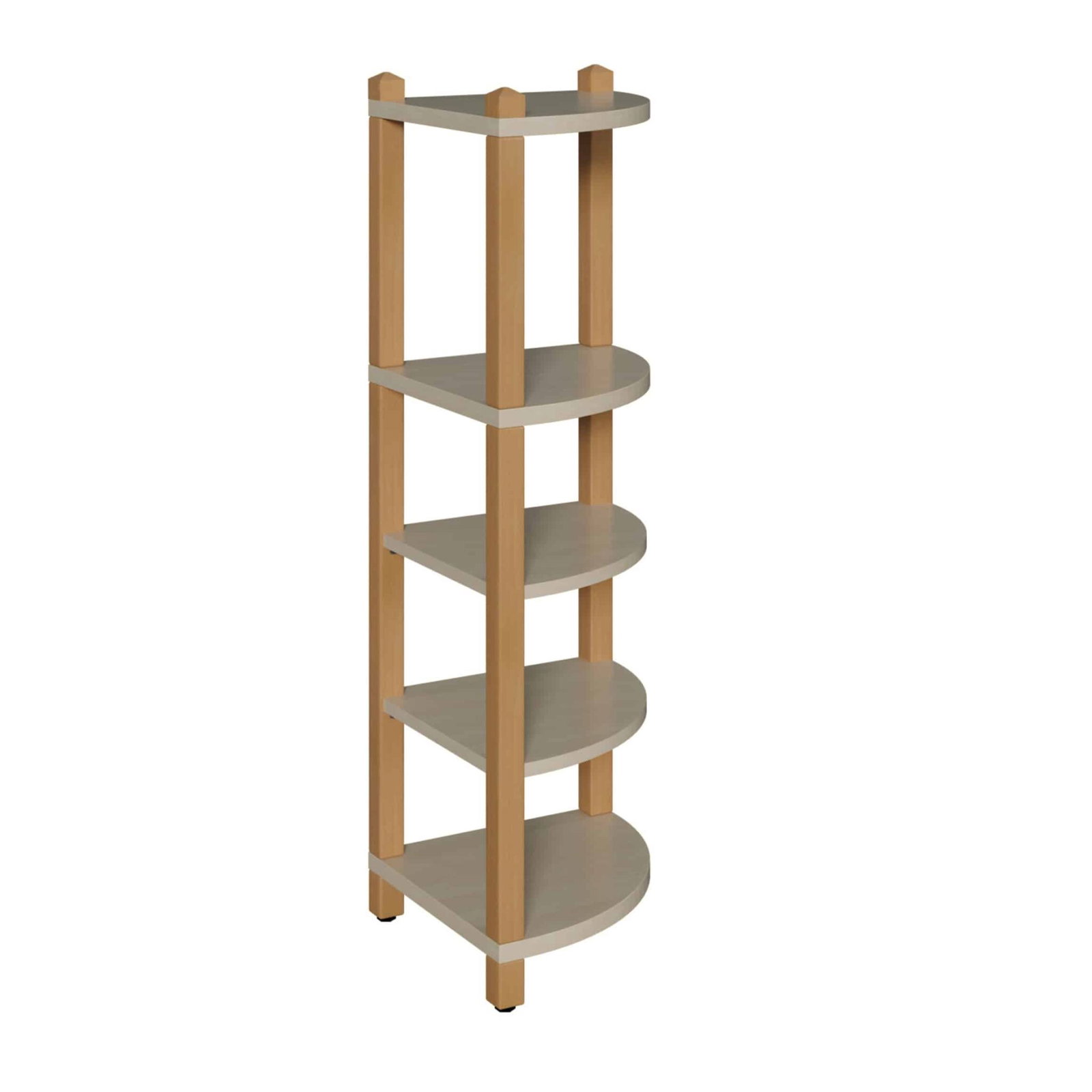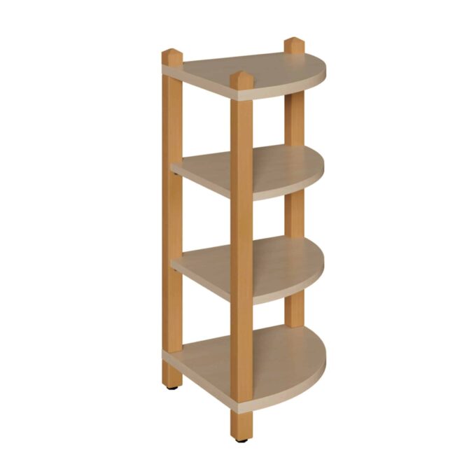 Das flexible Stollen-Eckregal: Ein stilvoller und praktischer Raumsparer für die Einrichtung von Krippen und Kindergärten. Mit diesem Möbelstück nutzen Sie Ecken optimal aus und schaffen gleichzeitig eine organisierte und zugängliche Umgebung für die Kleinen. Dank eines intelligenten Designs mit festen und verstellbaren Böden passt sich dieses Eckregal dynamisch an Ihren Bedarf an.
